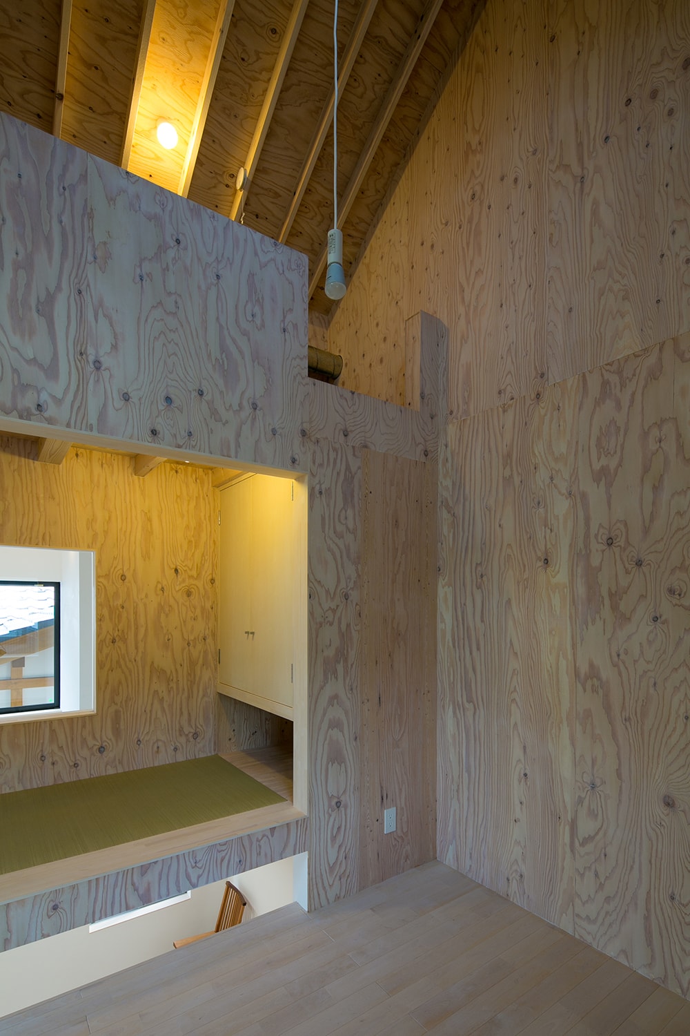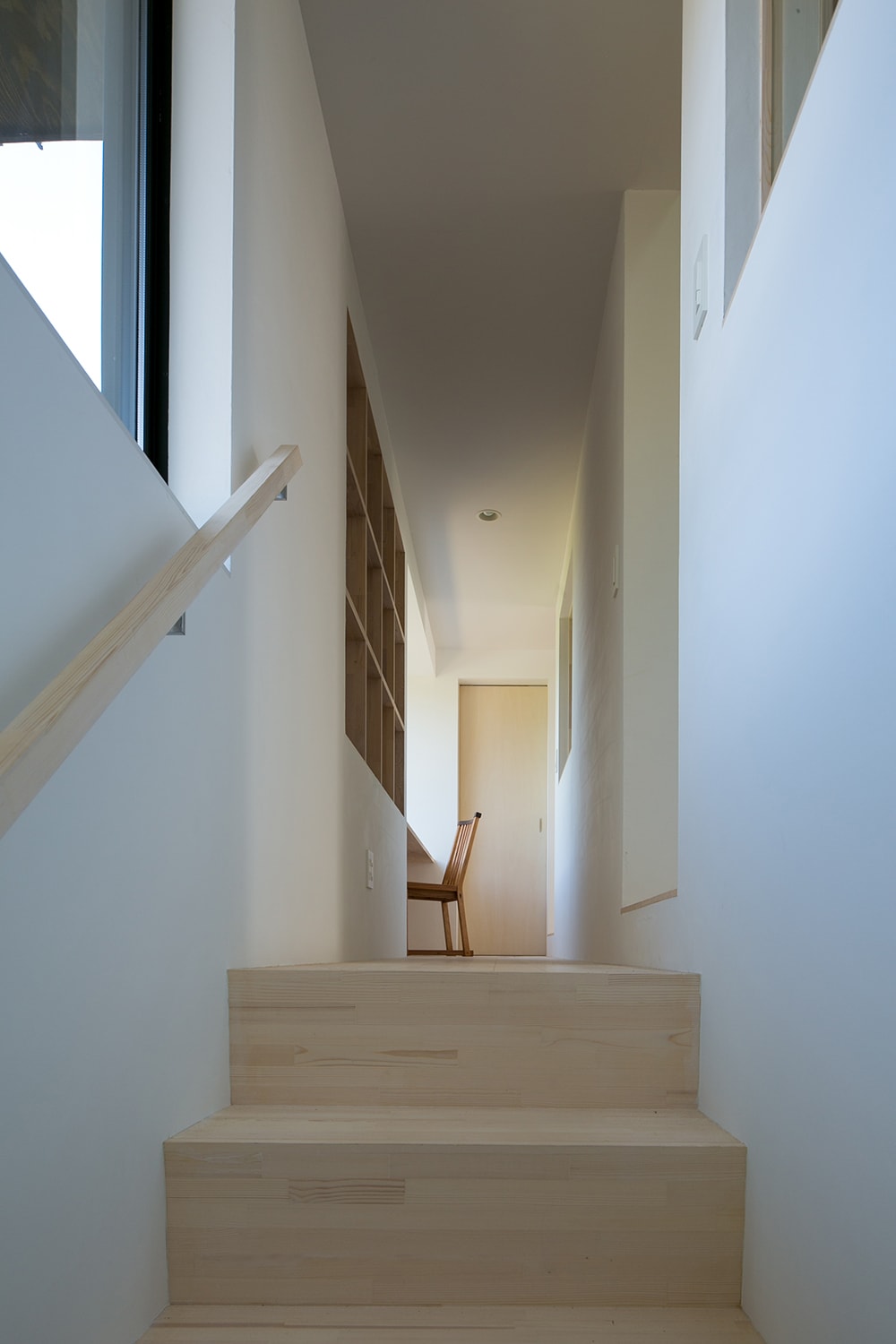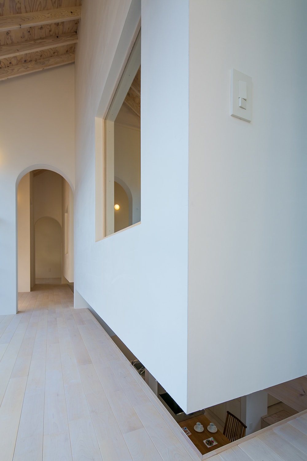 さらには、書斎になったり、物干になったり、遊び場になったりと多様な用途に使われる通路が立体的に全体をつながれることにより、何処にいても家族みんなの気配を感じられるいえです。