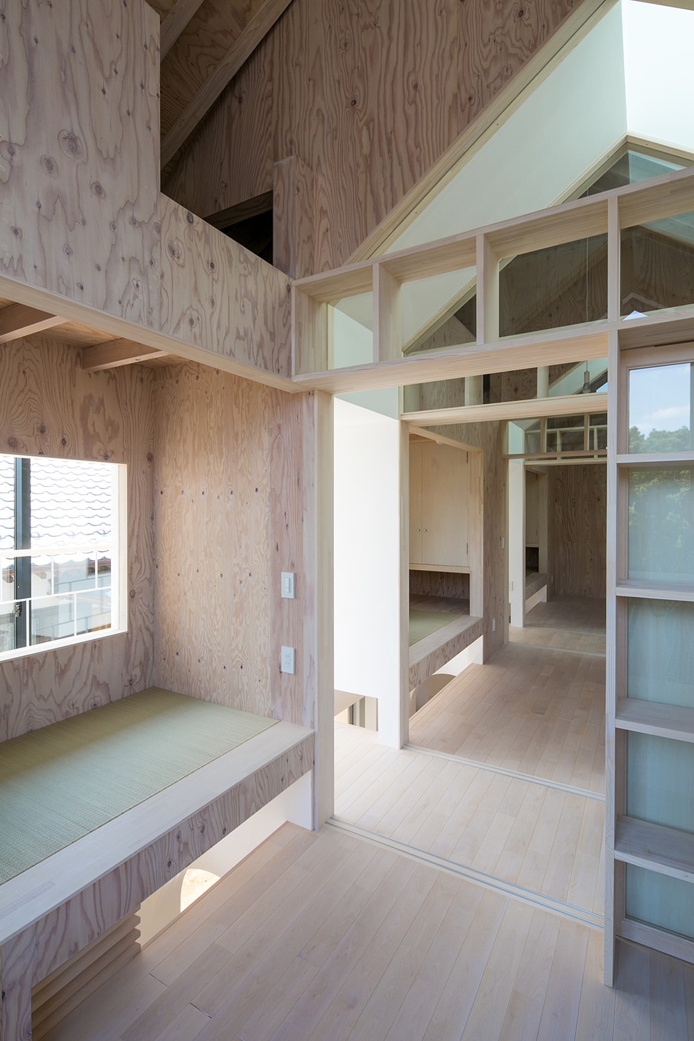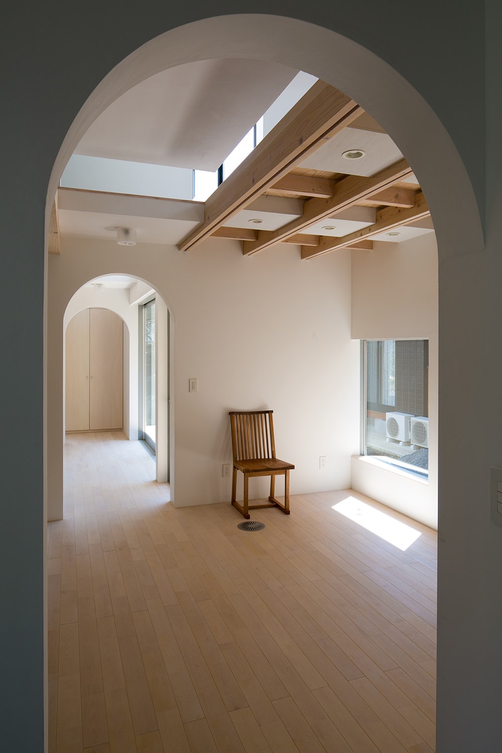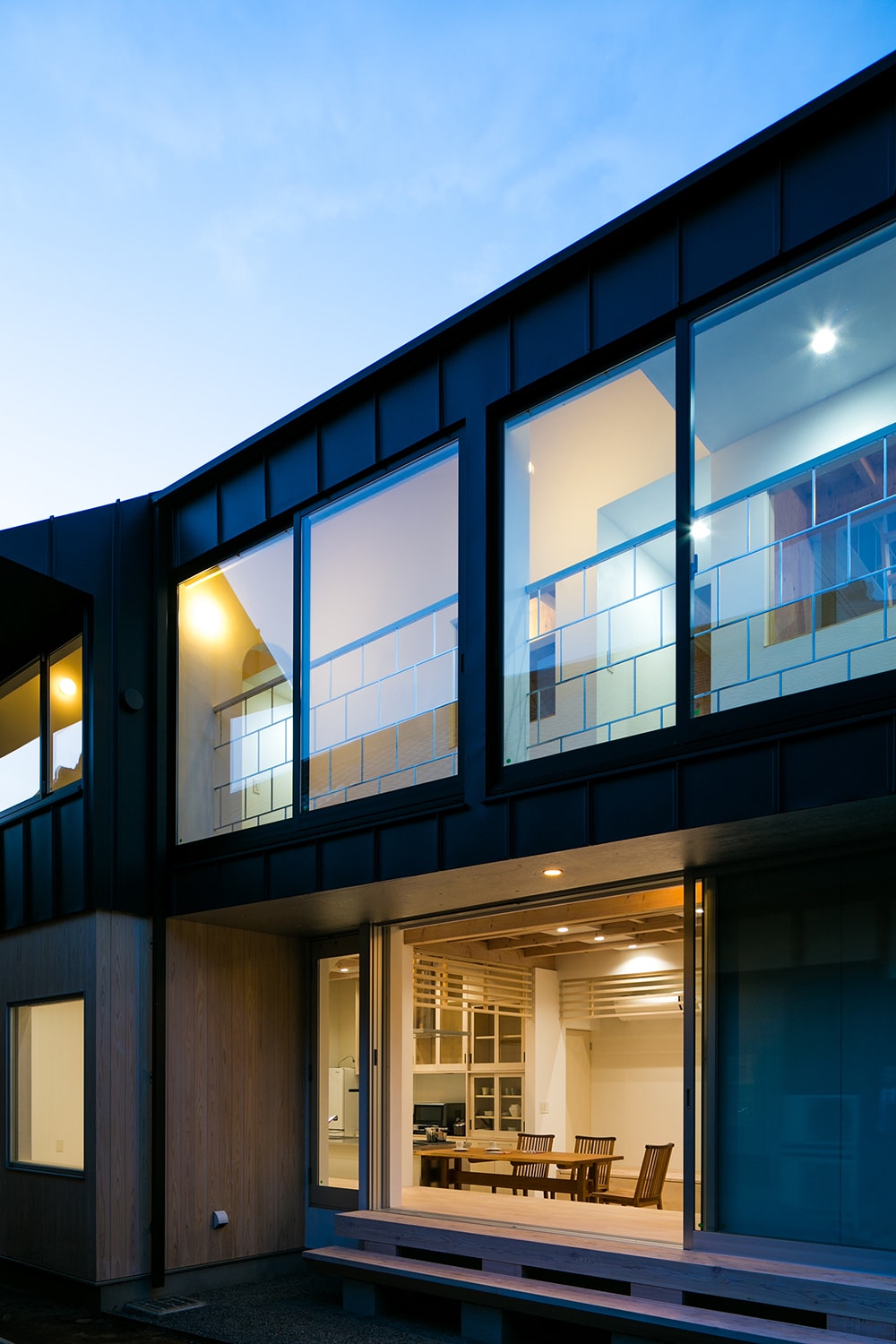 さらには、書斎になったり、物干になったり、遊び場になったりと多様な用途に使われる通路が立体的に全体をつながれることにより、何処にいても家族みんなの気配を感じられるいえです。