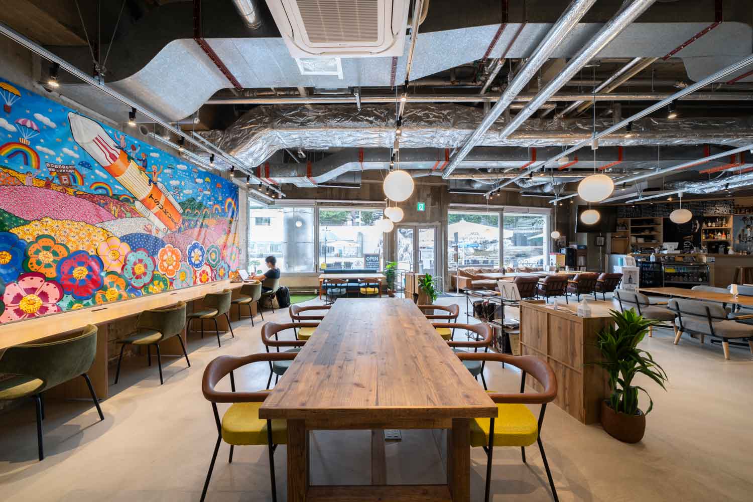 つくばセンタービル「co-en(コーエン)」のプロジェクト。多様な人が集い、さまざまなチャレンジが生まれるつくばの交流拠点のつくばセンタービル内co-cokkigエリアのデザインと改修設計・監理をおこないました。