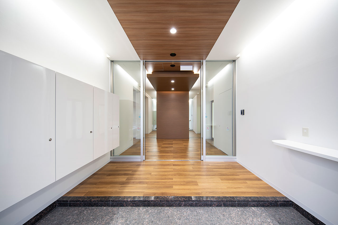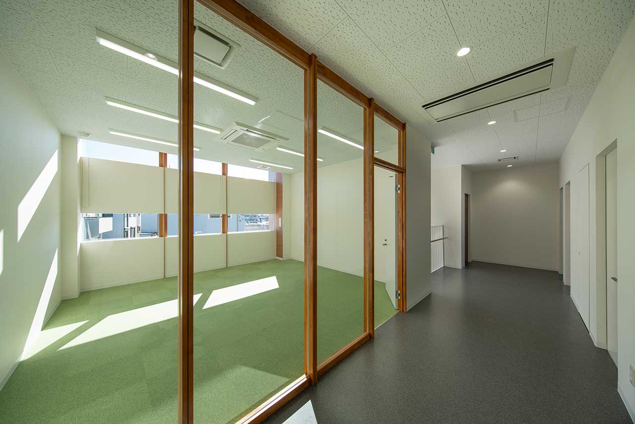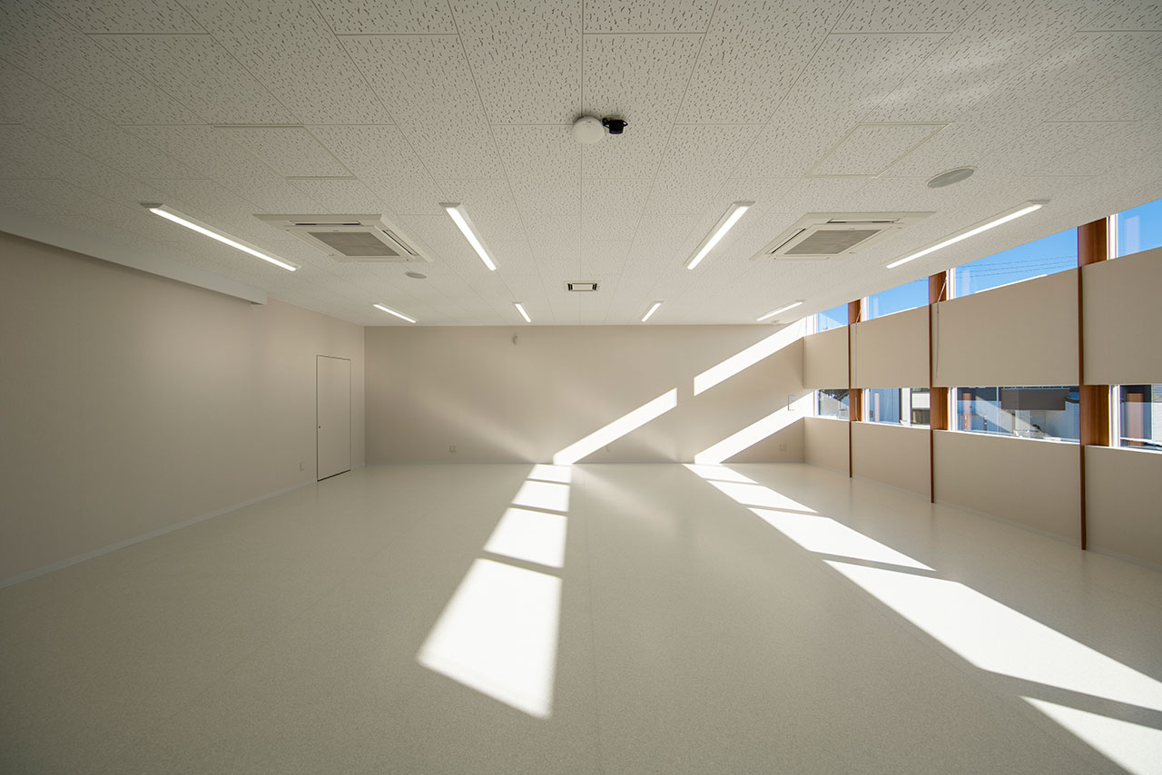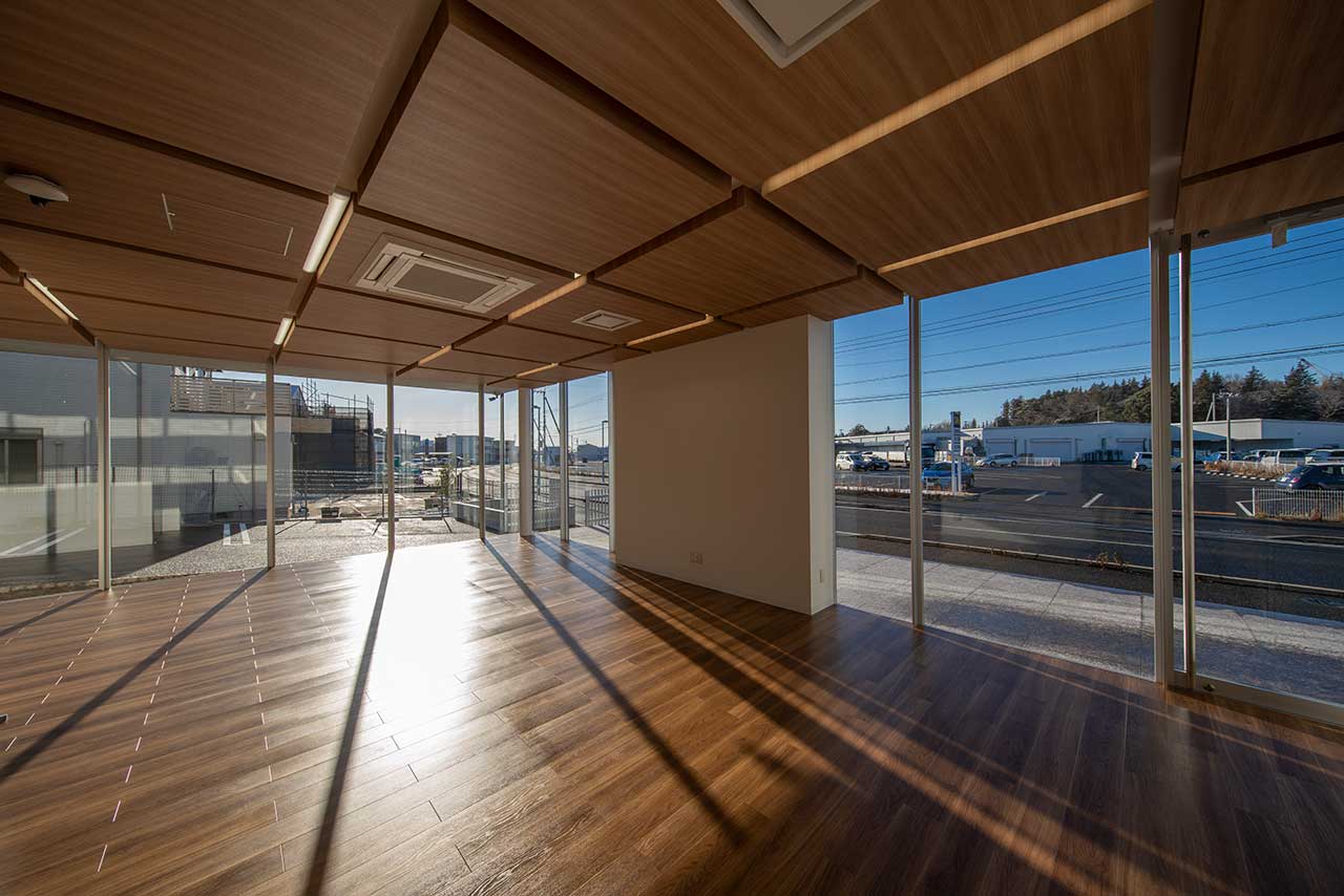 オフィスとしてシンプルでありながら、視線に配慮した連想窓で建物を構成し、建物に内外を有機的に連続させることで、地域や来訪者に対して、のびやかな企業イメージを印象付ける役割を持ったデザインとしました。