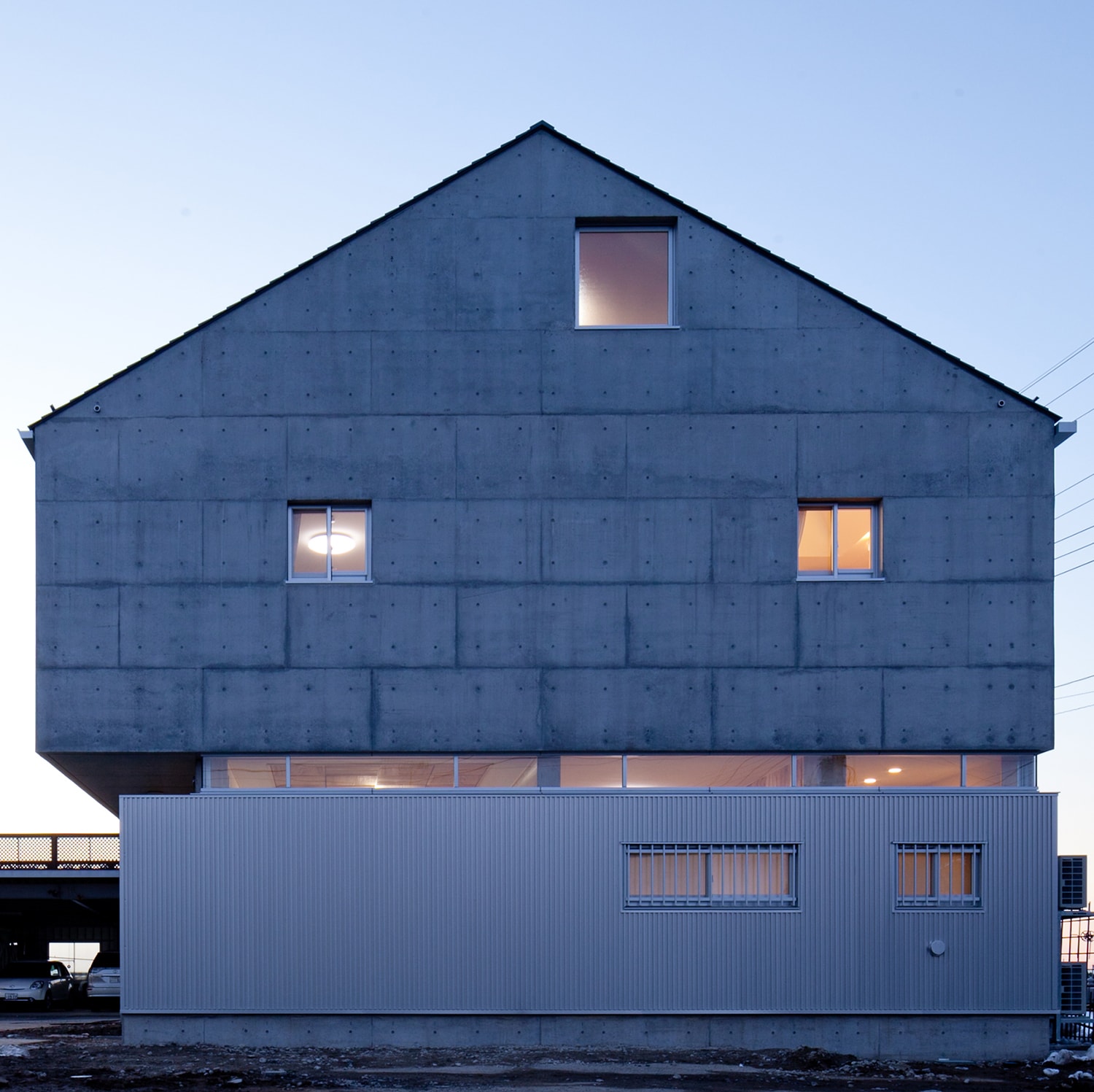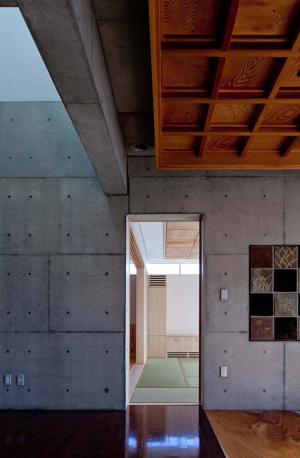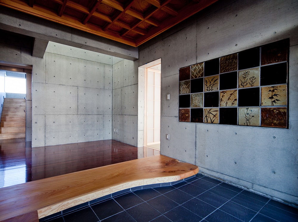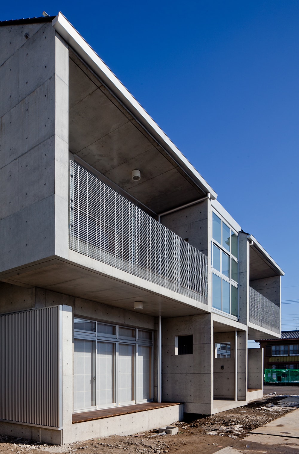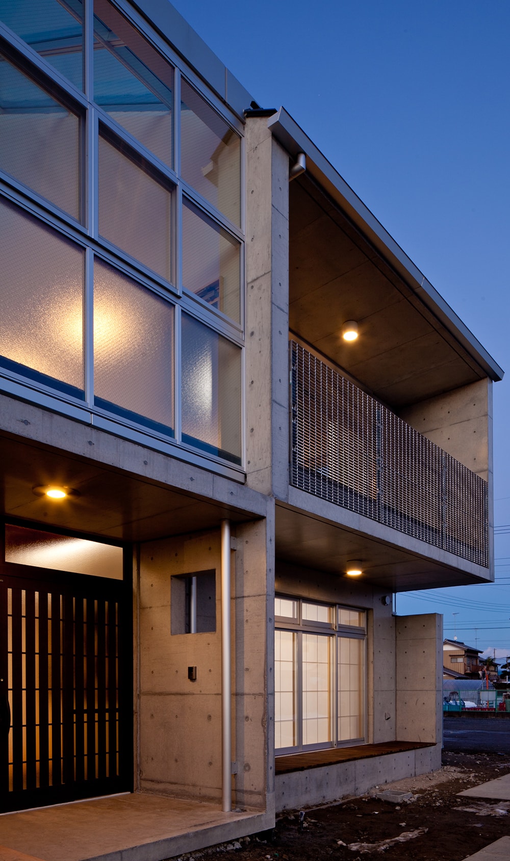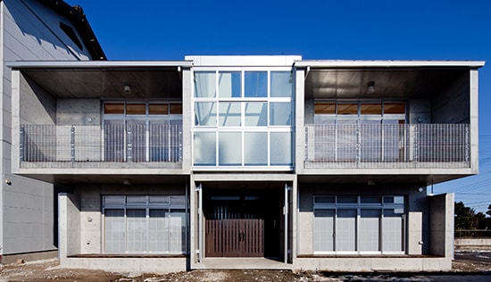 東日本大震災の被害を受けた母屋の建替え住宅です。強度とつたわる安心感を求めて、鉄筋コンクリート造が採用されました。
