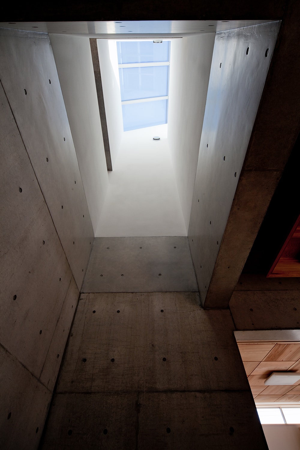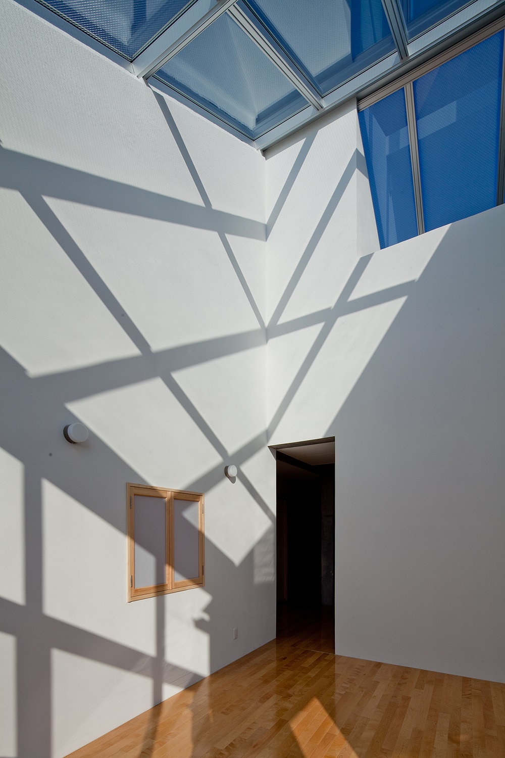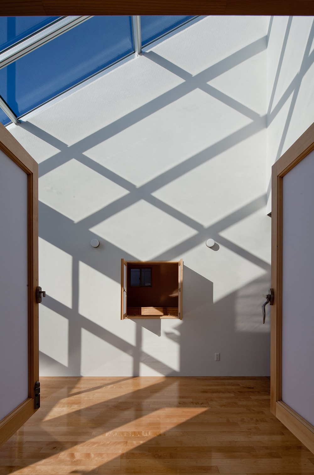 ここから射し込む光が、ずれた箱の隙間から各スペースに伝わりいえ全体が光に包まれます。
