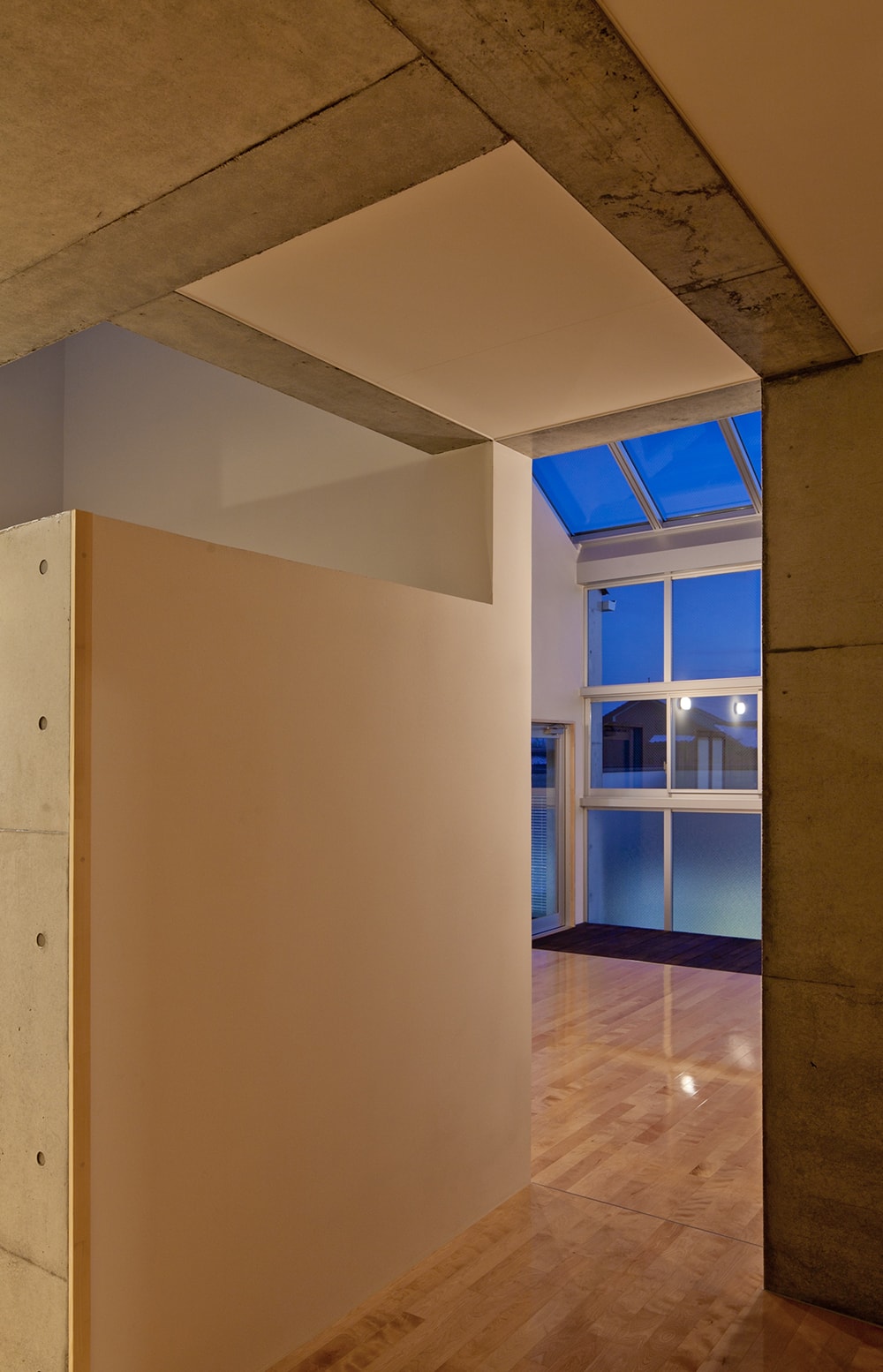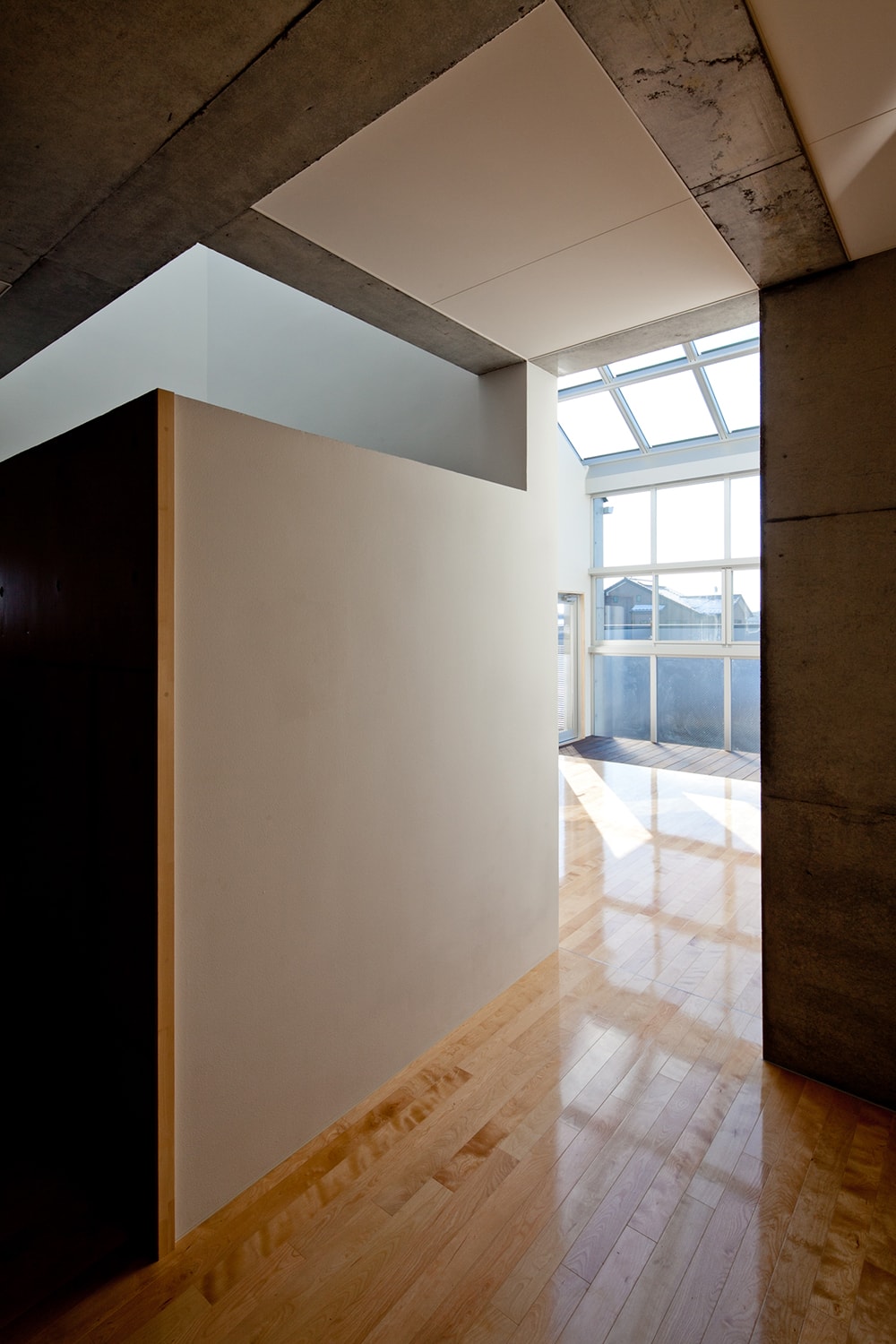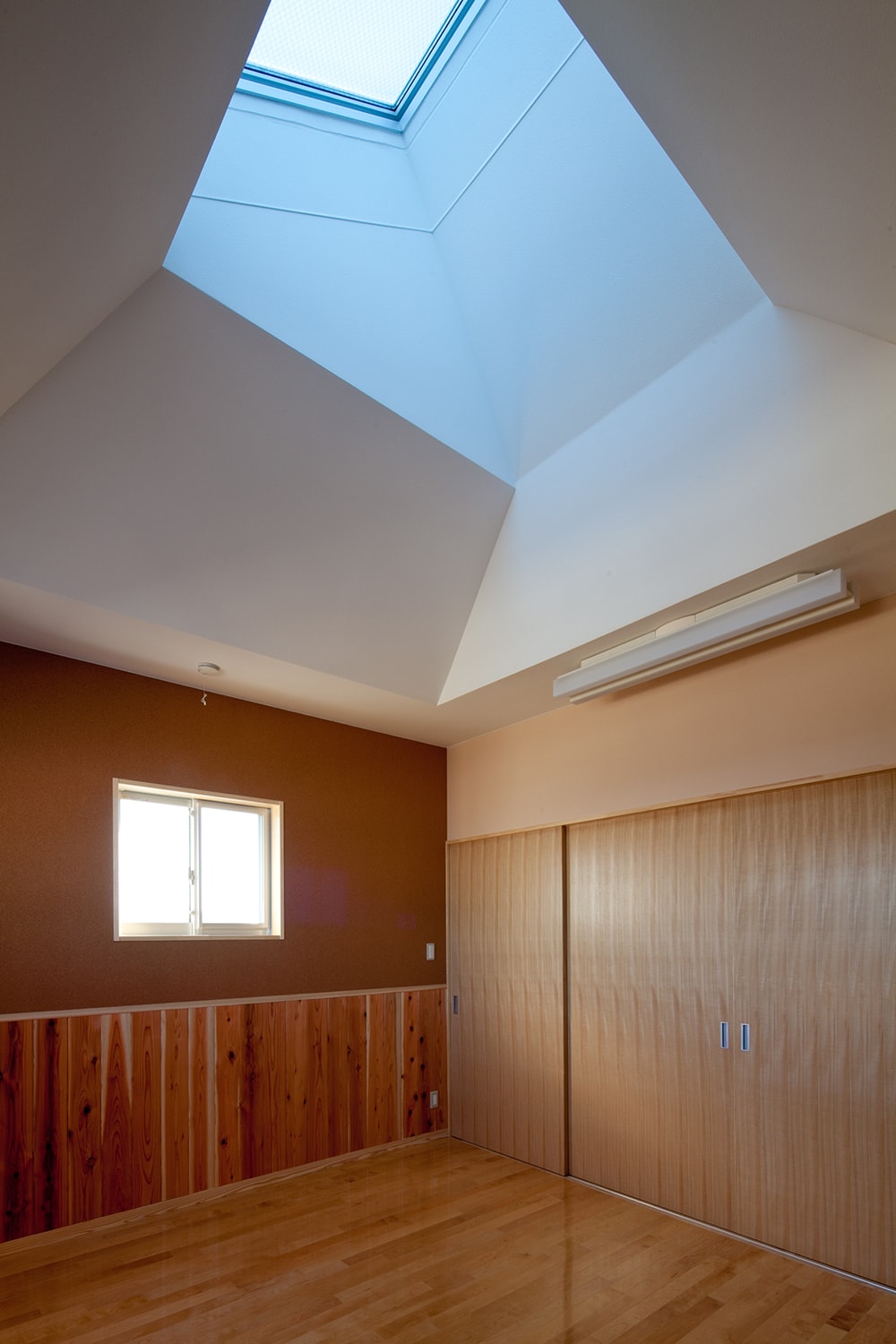 ここから射し込む光が、ずれた箱の隙間から各スペースに伝わりいえ全体が光に包まれます。