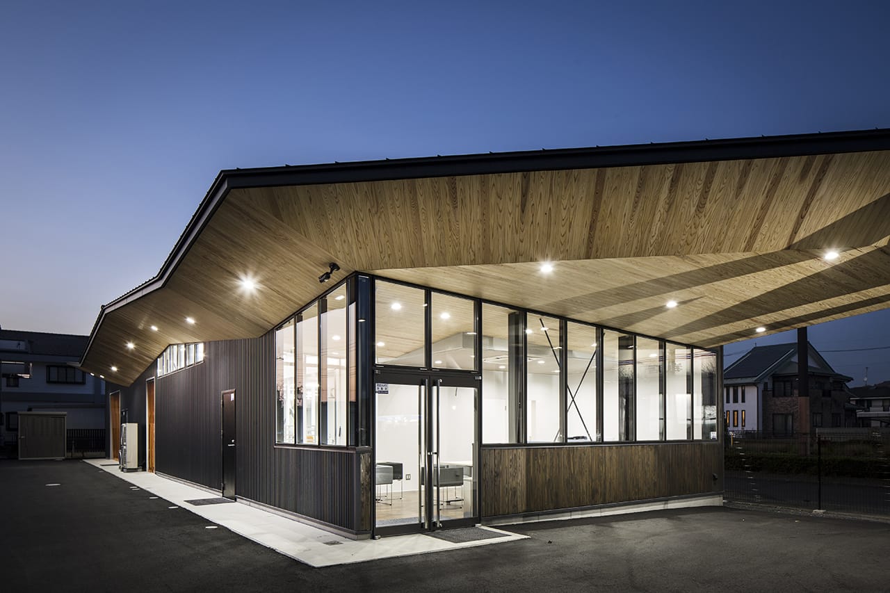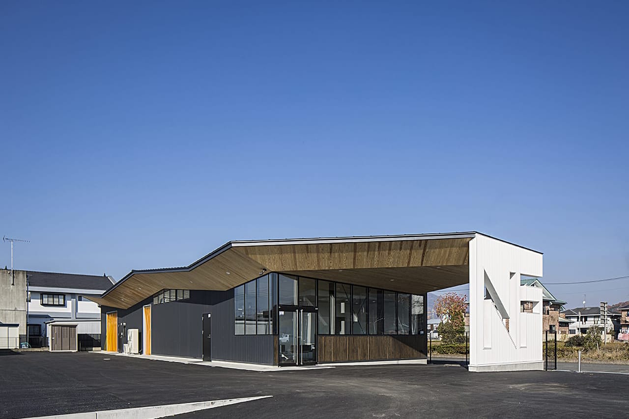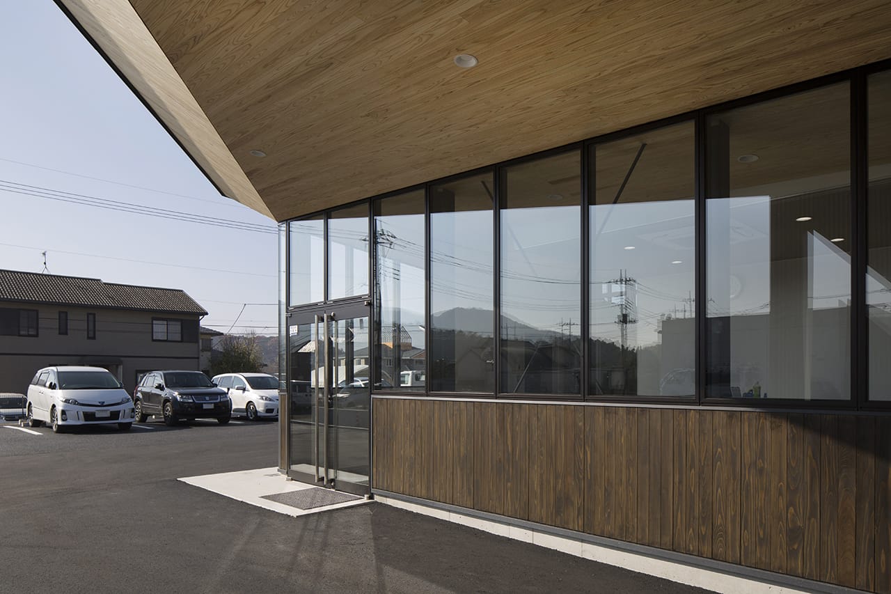 敷地から見えるつくばの山並みと呼応しながら、50号線を通る車や人の往来との連続性を持たせながらも、向かい入れる構成としています。