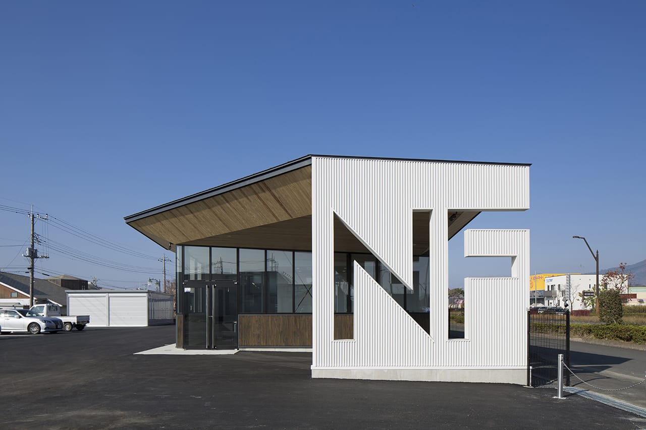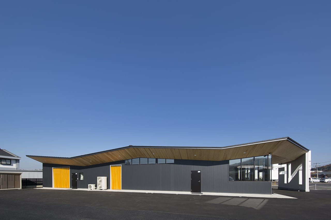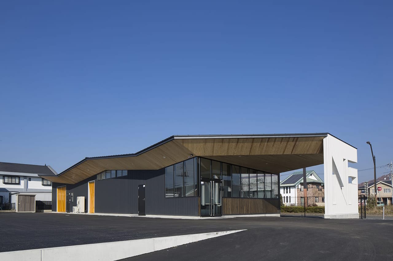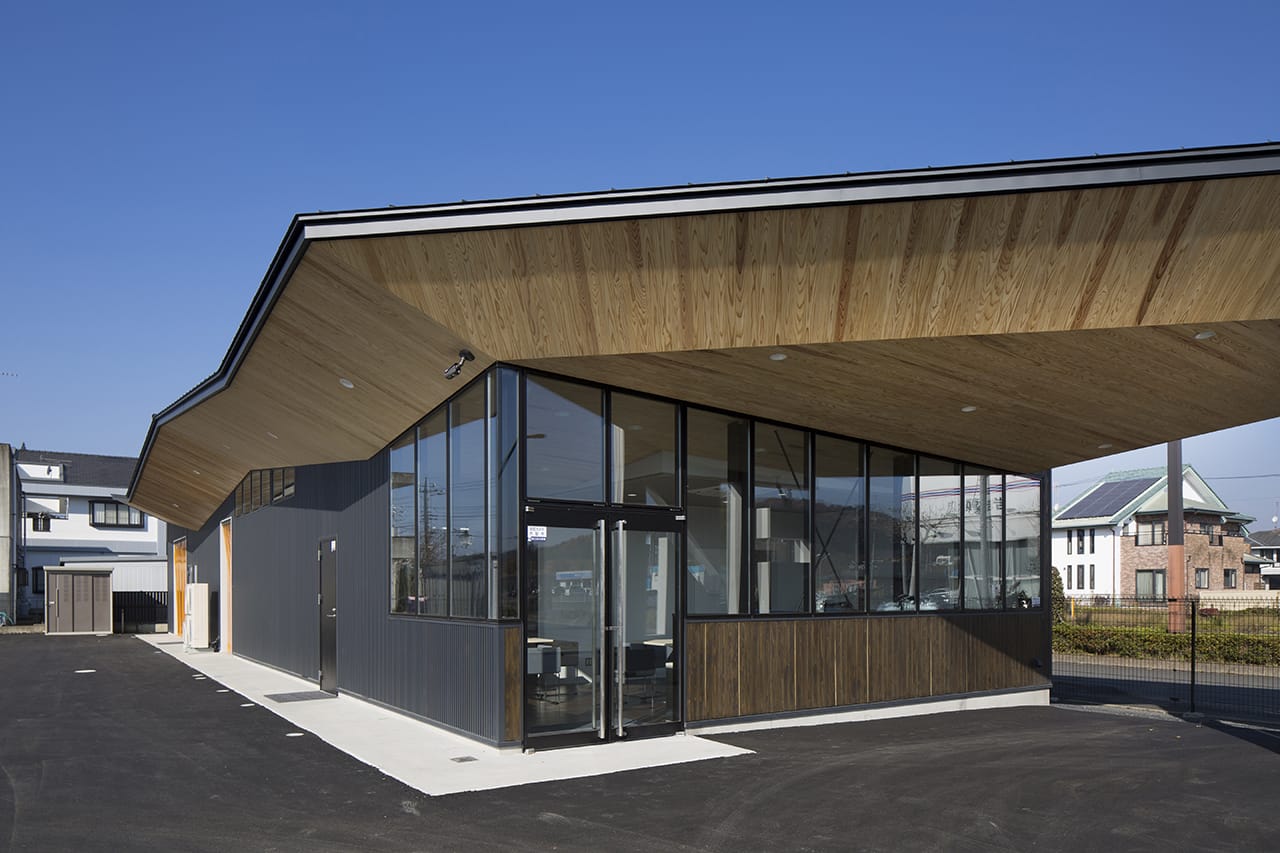 敷地から見えるつくばの山並みと呼応しながら、50号線を通る車や人の往来との連続性を持たせながらも、向かい入れる構成としています。