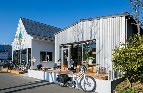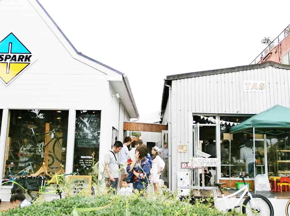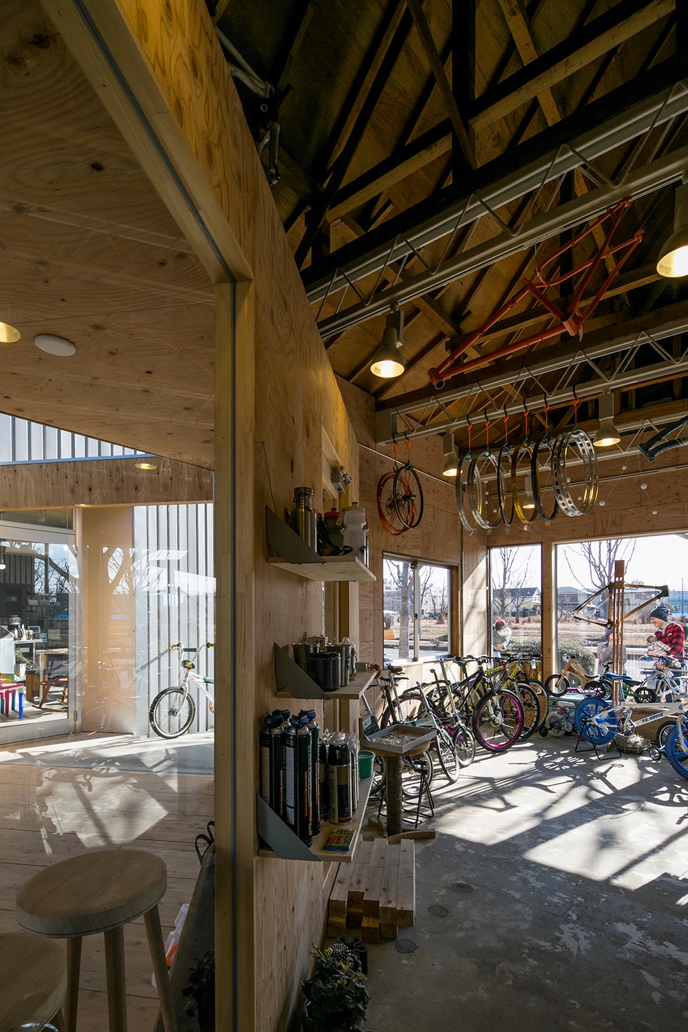 若い2人のクライアントが起業する中で、都市の中で朽ちていく建物を再生することにより新しいコミュニティスペースを創出したいという想いから。 TAS PARKの「TAS」は「足す=プラス」の意味。ショップに集まる人や自転車など、日常生活の全てにプラスに働く場所にしたい。