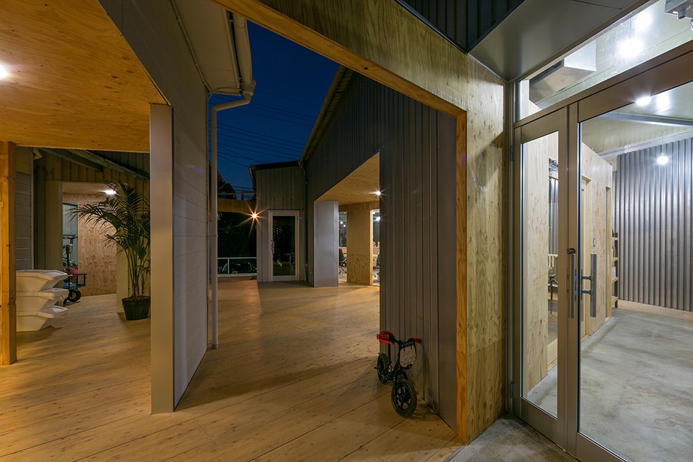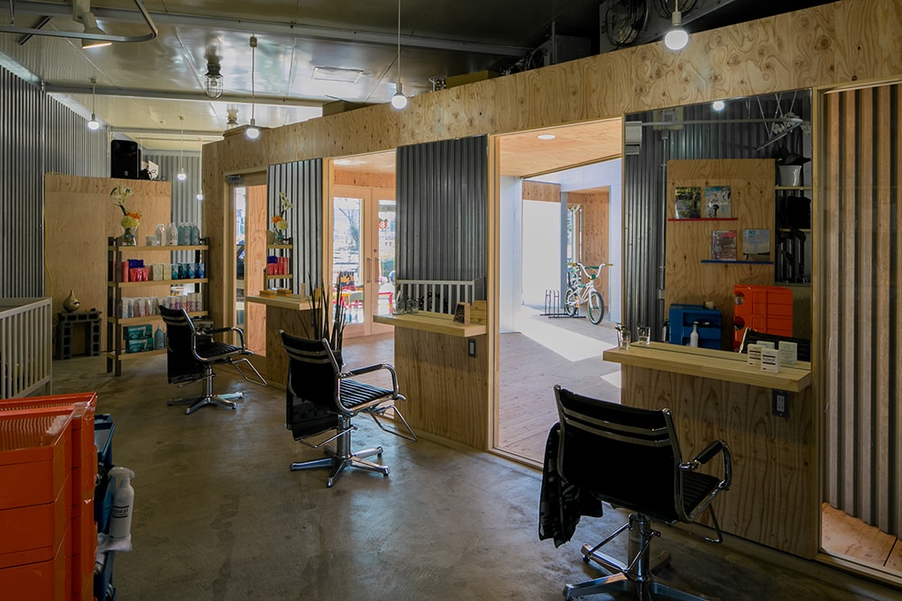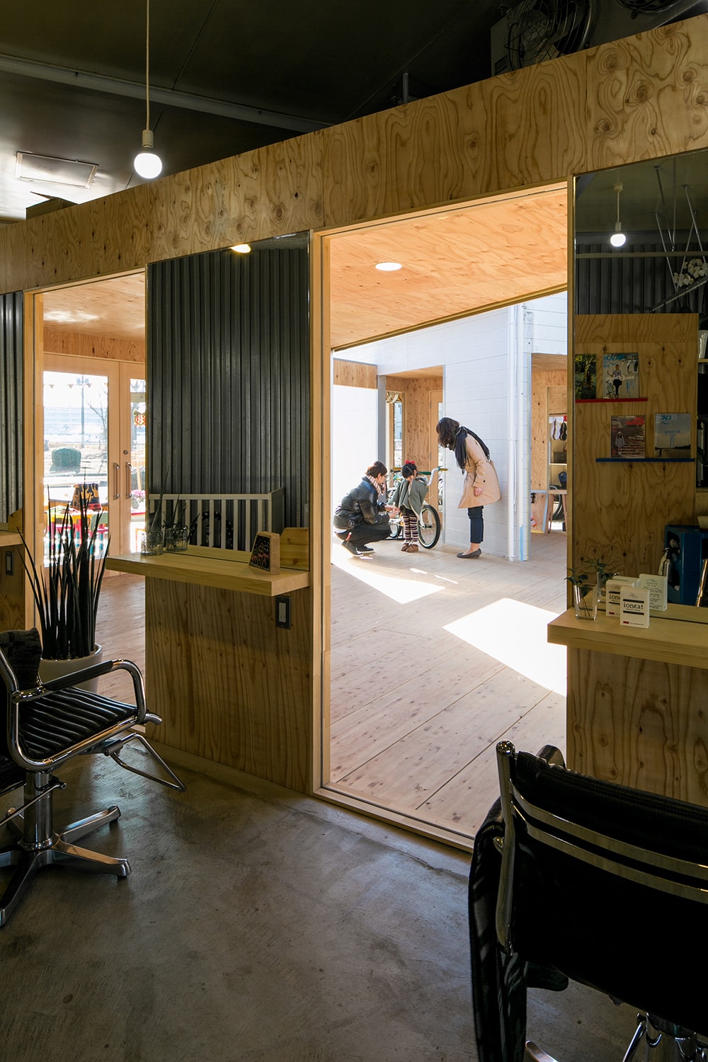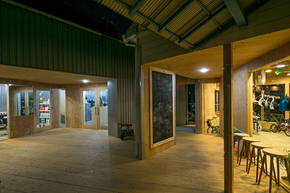 長い間使われていなかった事務所と倉庫と冷蔵倉庫を、自転車と美容の2つの機能を持ったみんなが集まるひとつの公園TAS PARKとして再生した。