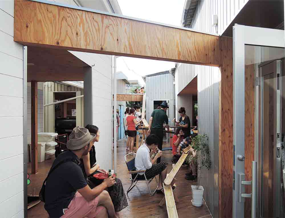 ローコストを実現するため、なるべく既存の外装・内装を維持・再利用しながら取り残された建築に新たな可能性を見いだし、価値を与え再生する。これは、建築のディテールではなく、行為・コミュニティのデザインである。